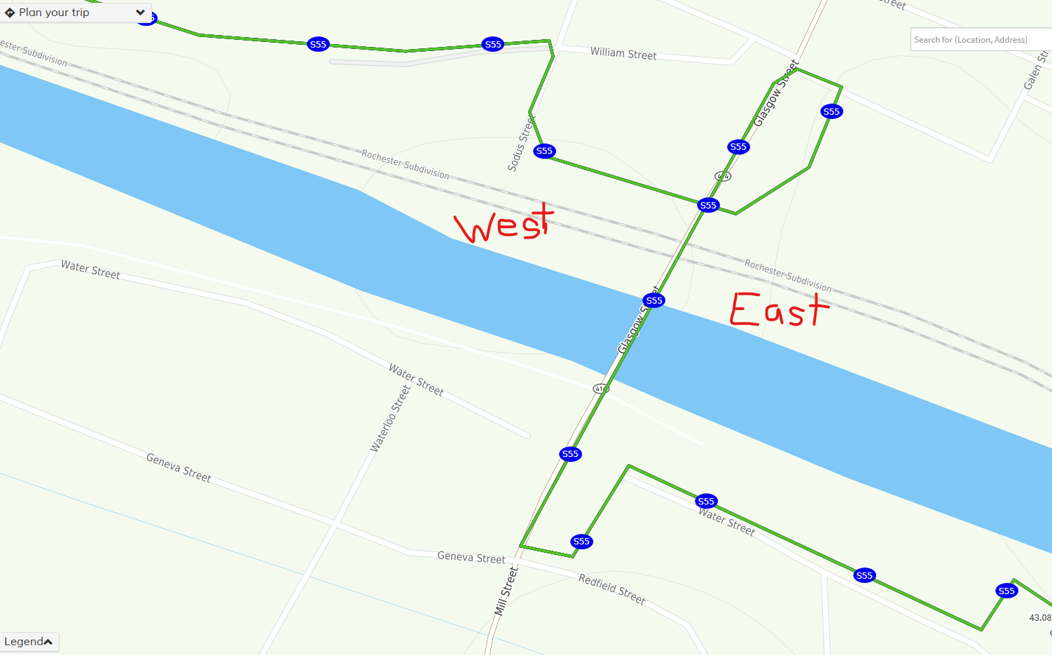 Location of the bridge in Clyde with respect to the trail:
